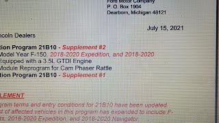 Customer Satisfaction Program 21b10 Powertrain Control Module Reprogram For Cam Phaser Rattle 2017 2020 Ford F 150 2018 2020 Expedition 2018 2020 Lincoln Navigator